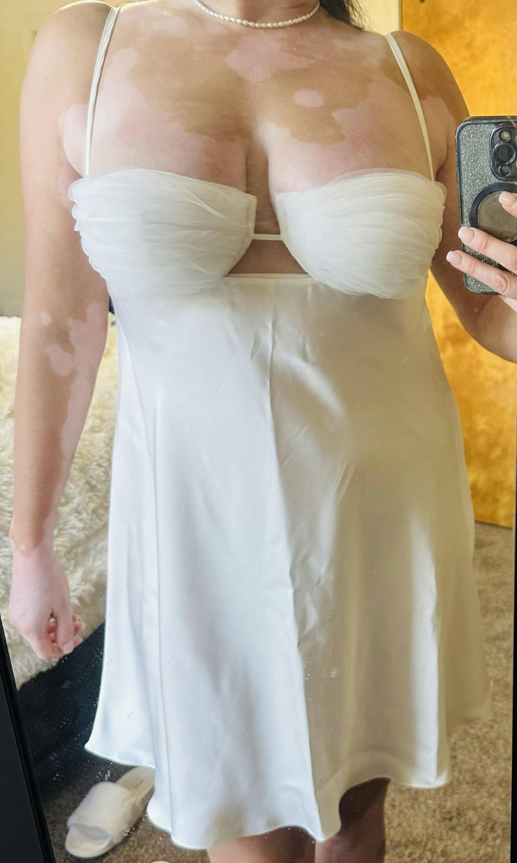 The slip is absolutely lovely & the packaging was of great quality. I am 5'7, a 36D, & about 170 pounds. I ordered the XL and everything fit perfectly. I didn't get it in time for my wedding due to all the delays with tariffs, which was a bit of a bummer. However, when I reached out to customer service, they quickly responded back and were willing to send out an additional one with express shipping with no additional charge. I didn't go down that path because it wasn't that big of a deal to me, but I was greatly appreciative of their willingness. Highly recommend to any future brides, just make sure you order at least 2 months out to ensure it gets to you on time.